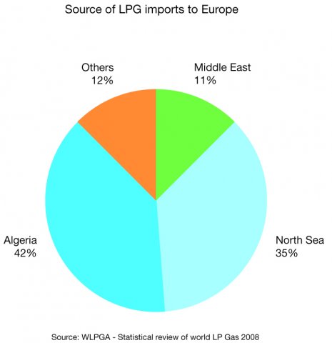 Thanks to natural gas and the oil-refining industry, Europe is almost self-sufficient in LPG. Europe’s security of supply is further safeguarded by: